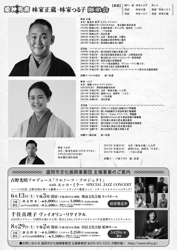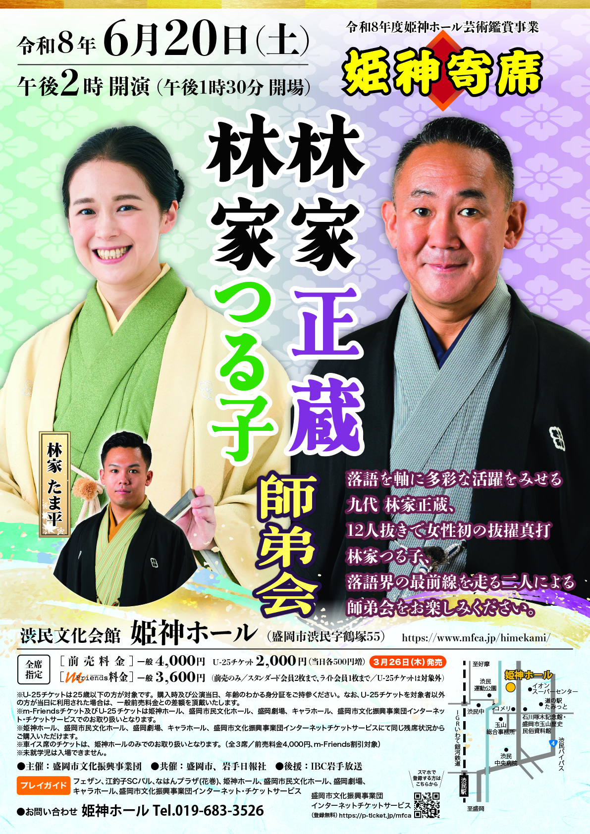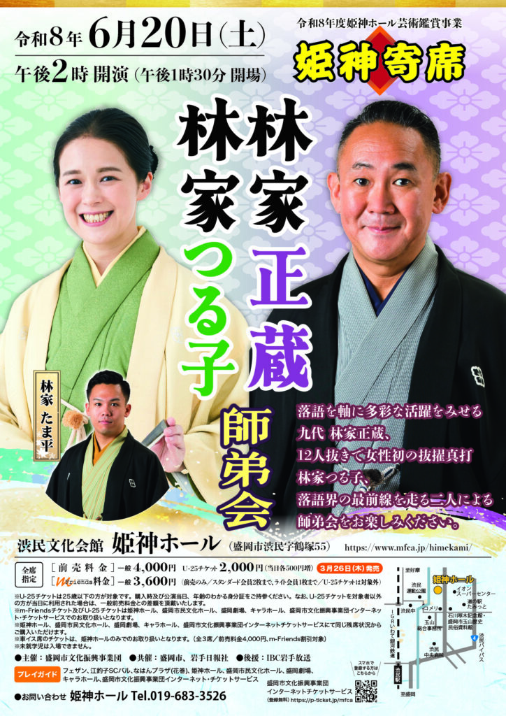 姫神ホール・渋民公民館  > 主催事業  > 姫神寄席「林家正蔵・林家つる子 師弟会」