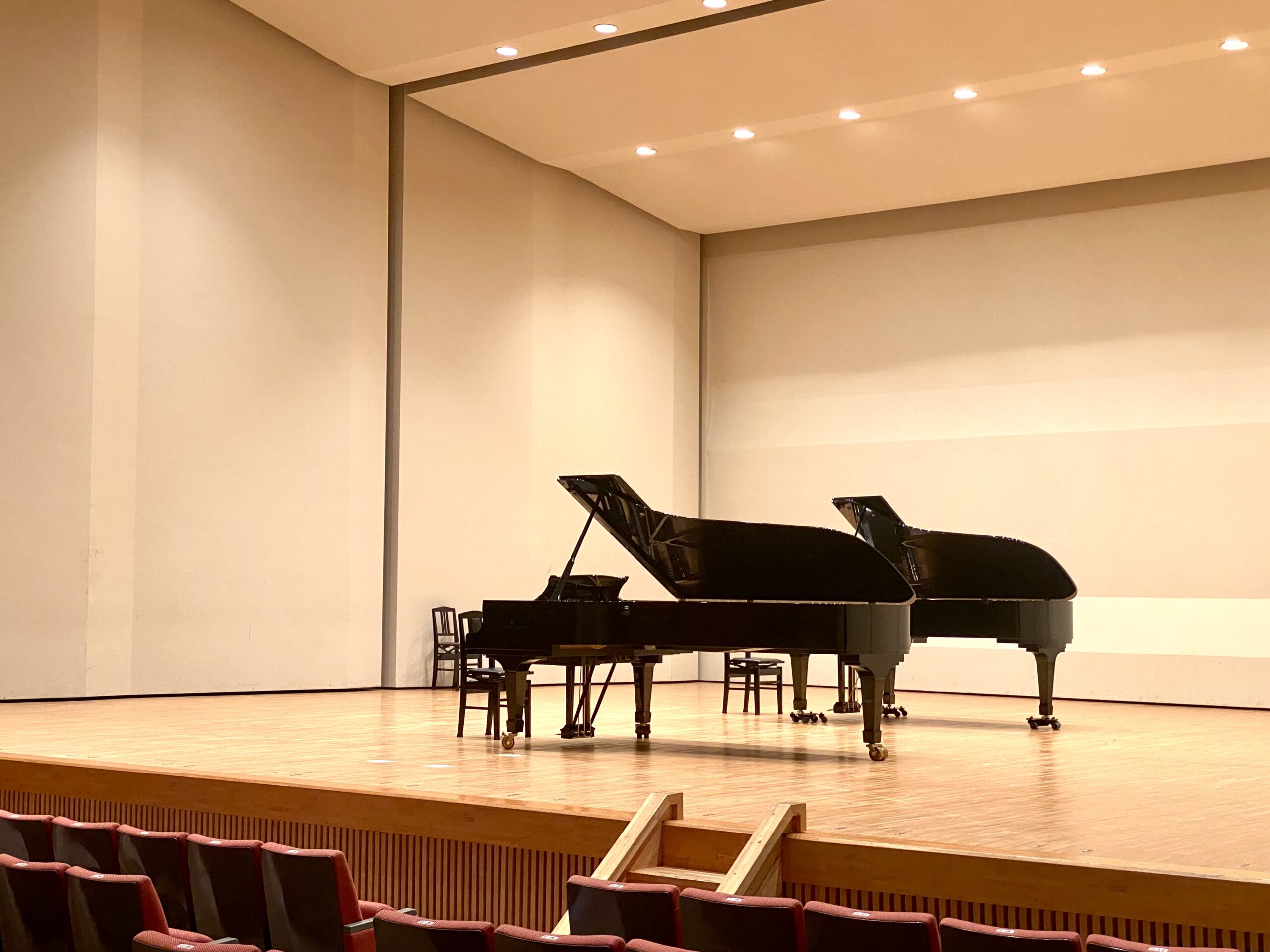 音響反射板を設置、2台どちらのピアノも演奏可能です。