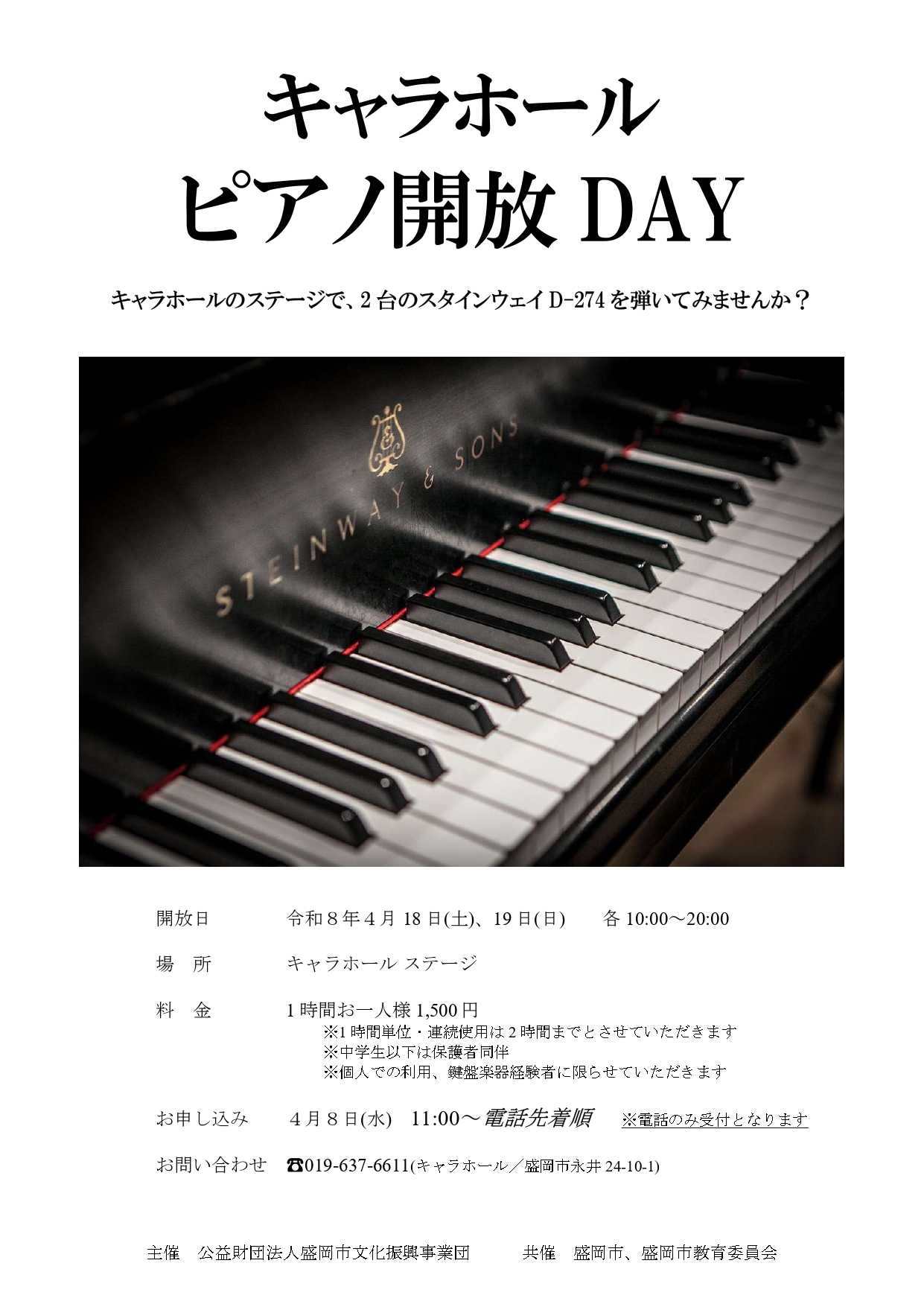 【4月8日11:00~受付開始】キャラホール ピアノ開放DAY