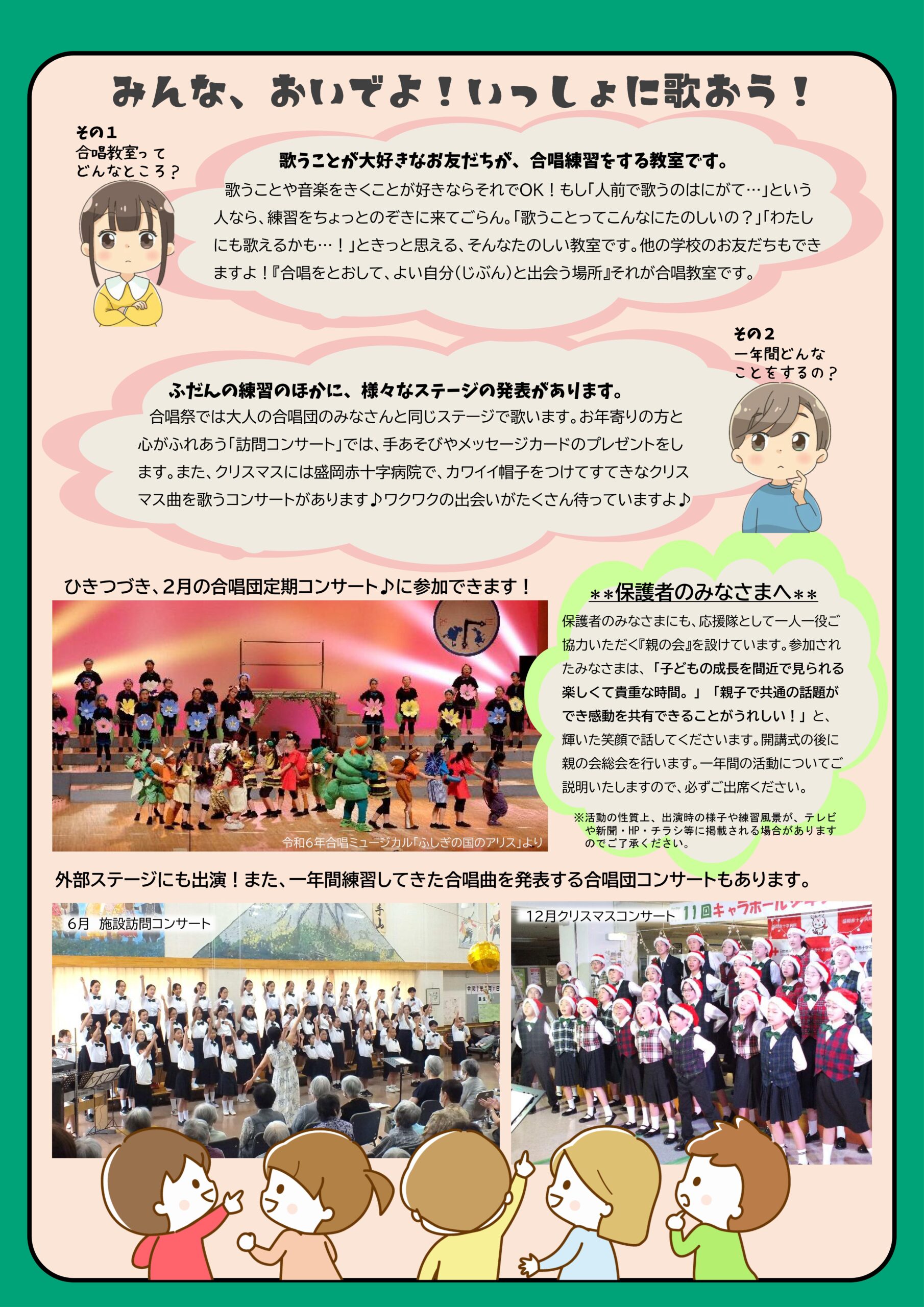 また、希望者は引き続き2月のキャラホール少年少女合唱団定期コンサートに参加し、合唱ミュージカルにも挑戦できます。