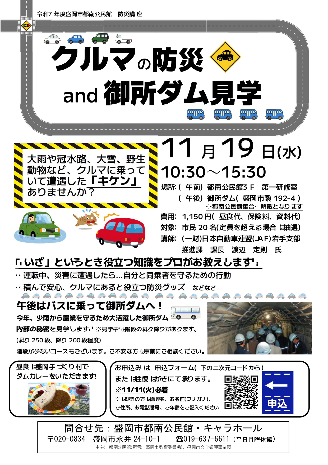 【申込受付中】防災講座「クルマの防災&御所ダム見学」