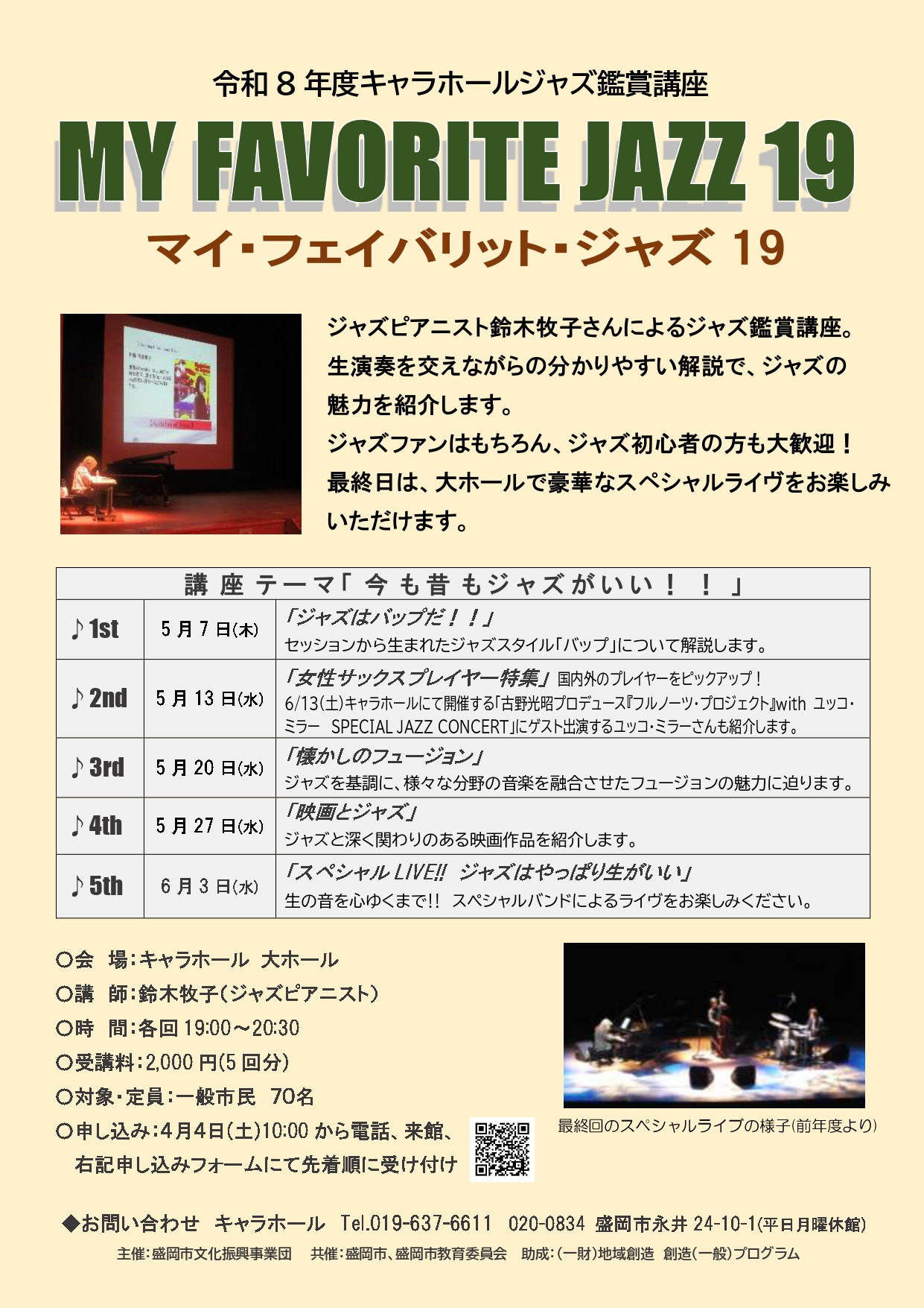 【申込受付中】キャラホールジャズ鑑賞講座「マイ・フェイヴァリット・ジャズ19」