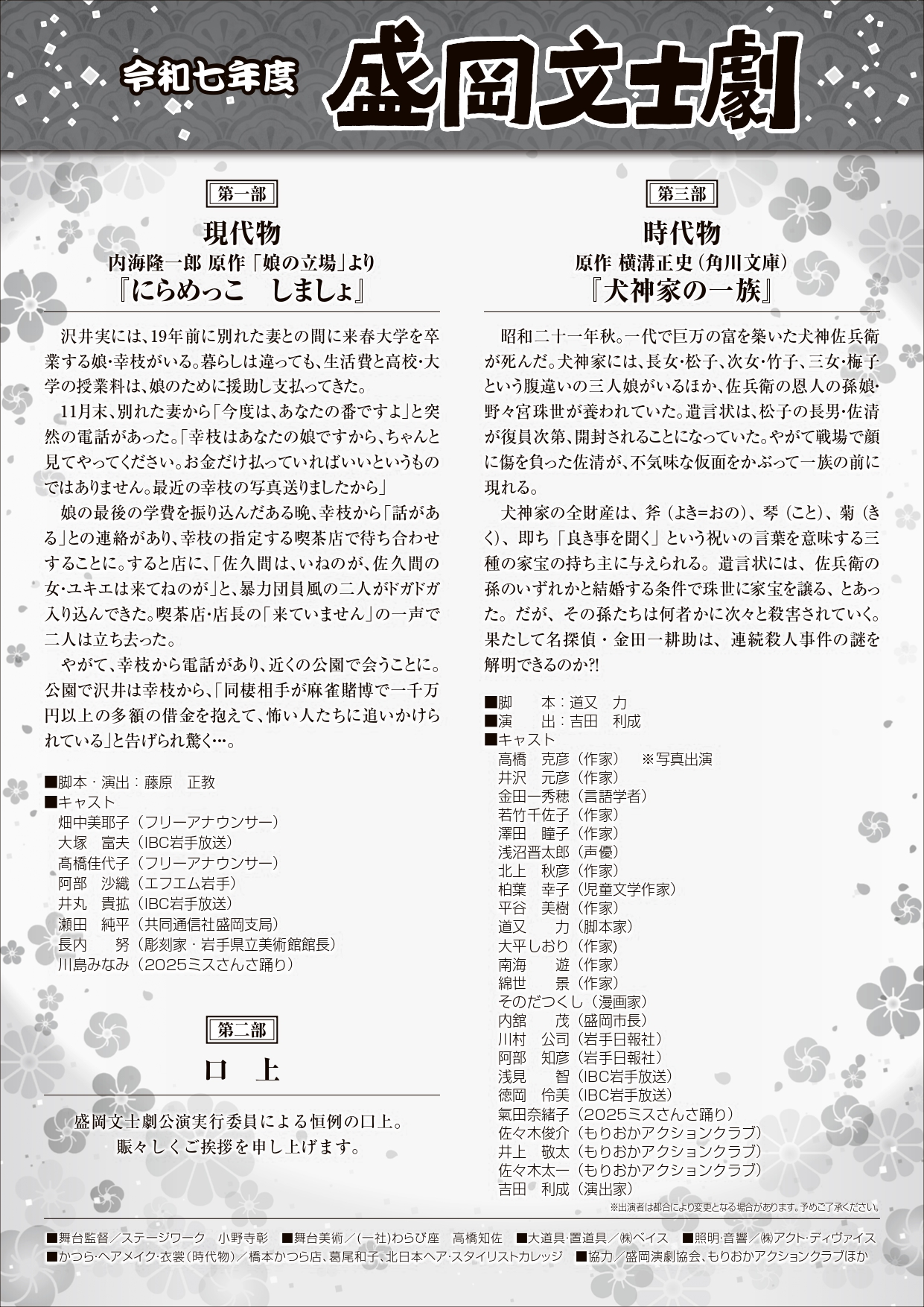盛岡劇場・河南公民館  > 主催事業  > 令和7年度 盛岡文士劇