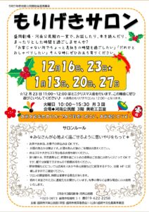 ★12/23 11:00~12:00、ミニクリスマス会を開催します。どなたでも参加できます。直接会場へどうぞ!通常のサロンは12:00からとなります。