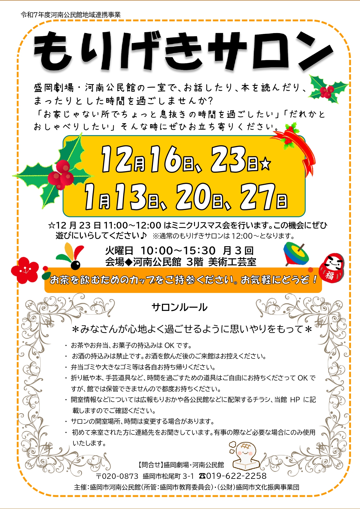 ・開催については、広報もりおかや各公民館などに配架しているチラシをご確認ください。