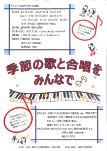 「季節の歌と合唱をみんなで♪」講座修了発表会の情報はこちら>>