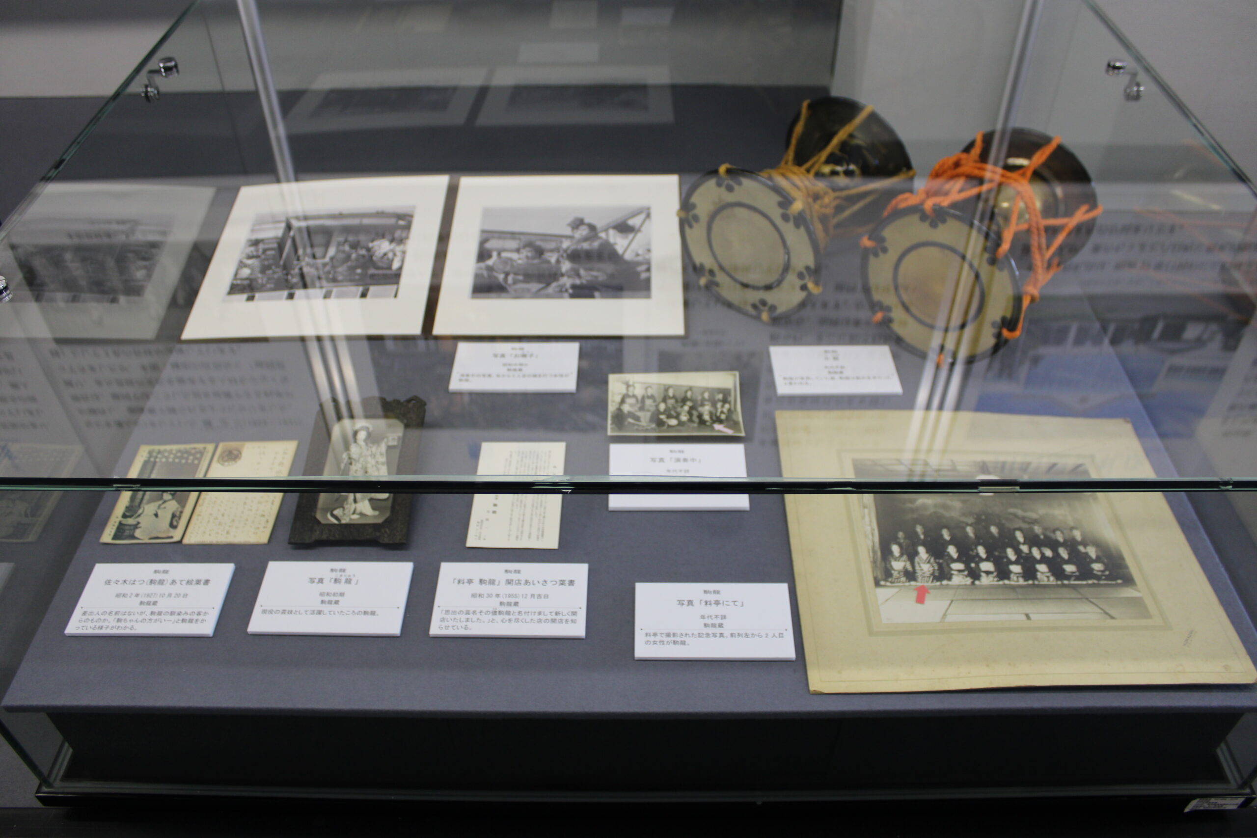 本町で活躍していた「駒龍」という芸妓が引退し、昭和30年(1955)に自らの名前をつけた料亭「駒龍」を開店しました。今も盛岡に残る数少ない料亭で、盛岡芸妓の活躍の場のひとつともなっています。鼓の名手だった駒龍の鼓、三味線箱や扇子、開店時の挨拶の葉書など、お座敷の雰囲気を伝える資料を展示しました。