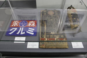 「森永ミルク」「胃腸新剤」看板(宮手薬店蔵)   大福帳や通帳(橋本屋本店蔵)