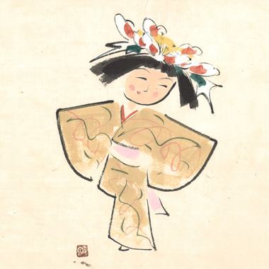 【写真:中井汲泉「南部繪」より「さんさ娘」(中井陽子氏寄贈)