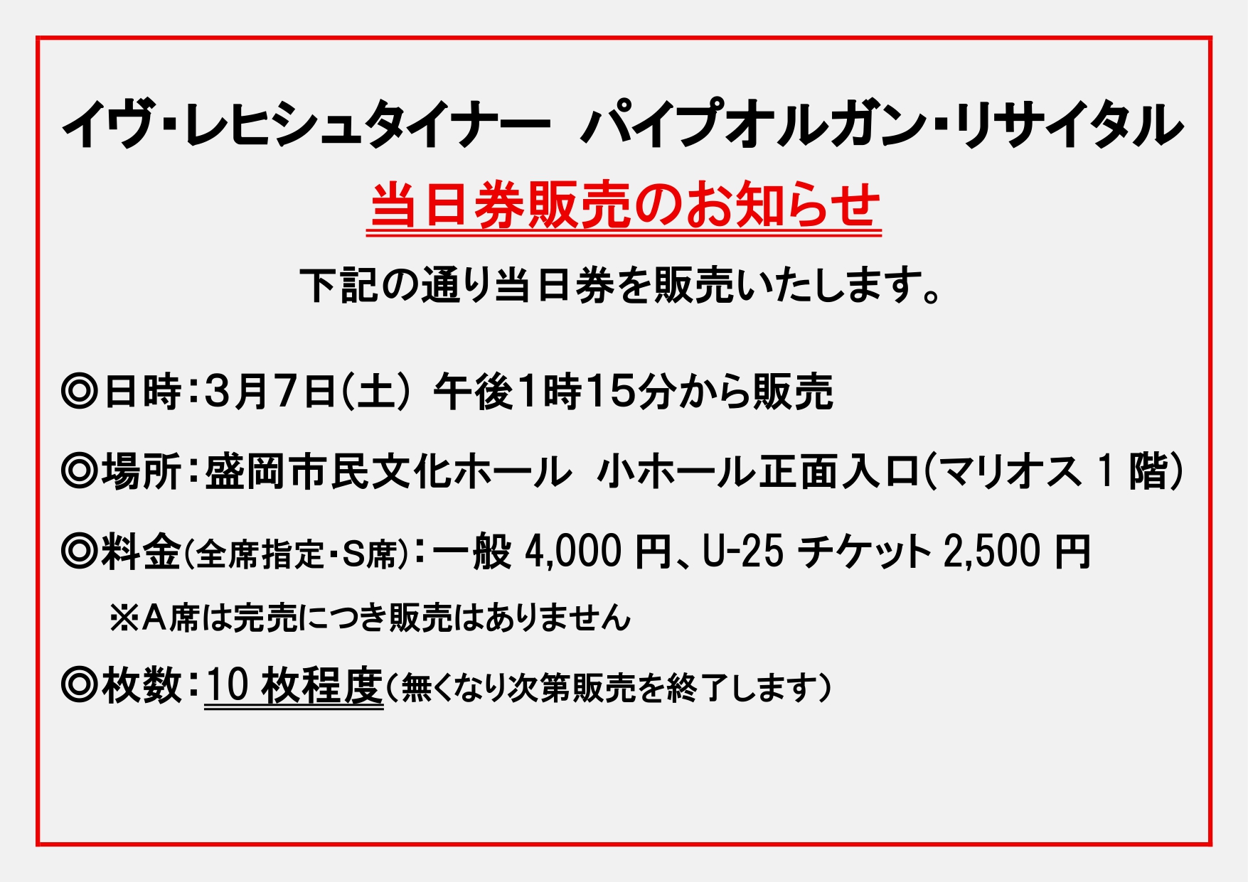 S席3,500円 U-25チケット2,000円(当日各500円増) ※A席は完売しました