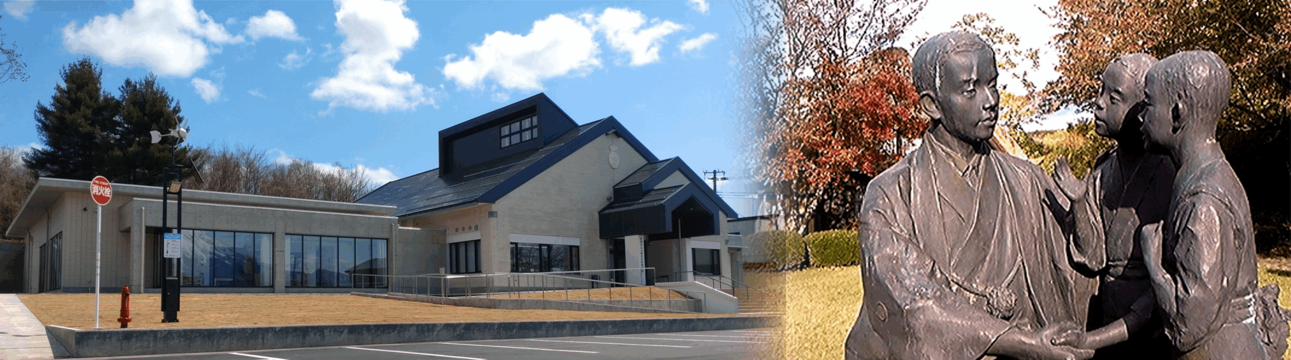 石川啄木記念館・盛岡市玉山歴史民俗資料館の中庭には、啄木が代用教員として勤めた旧渋民尋常小学校や一家が間借りした旧齊藤家が移築されています。これらは、盛岡市指定有形文化財でもあり、当時の雰囲気を今に伝えています。そして、啄木と子供達のブロンズ像と岩手山が来館者を温かく迎えてくれます。