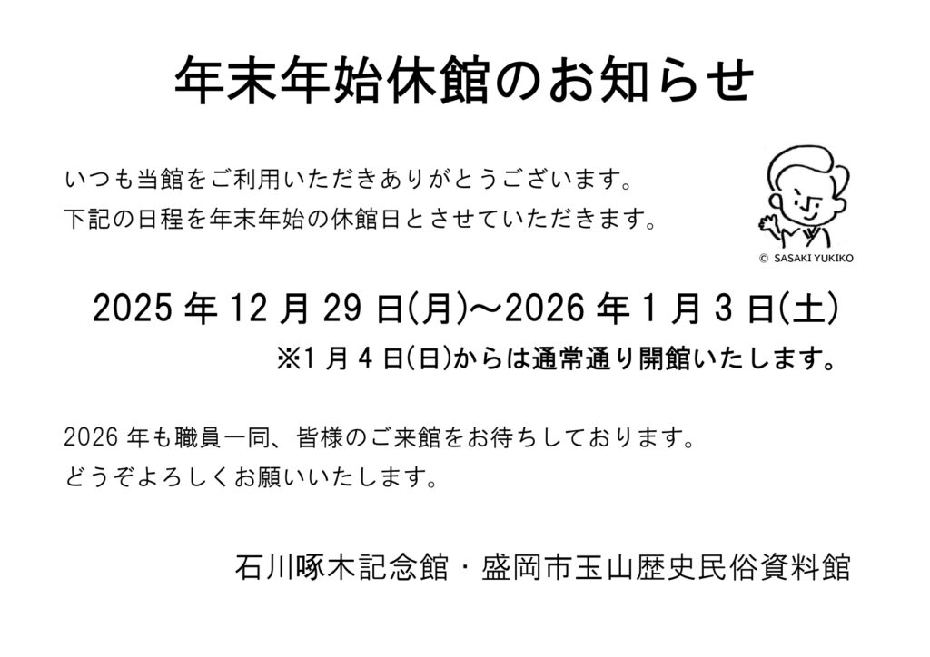 年明けは、1月4日(日)から通常通り開館いたします。なお、1月5日(月)は休館日です。お気をつけください。