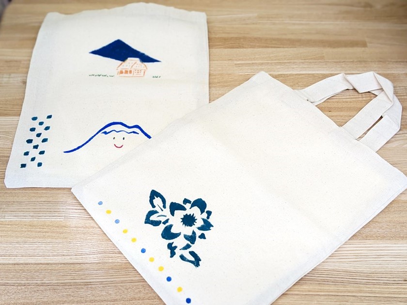 同館収蔵資料や、玉山地域をモチーフにしたイラストを型にして染めたトートバックをつくります!